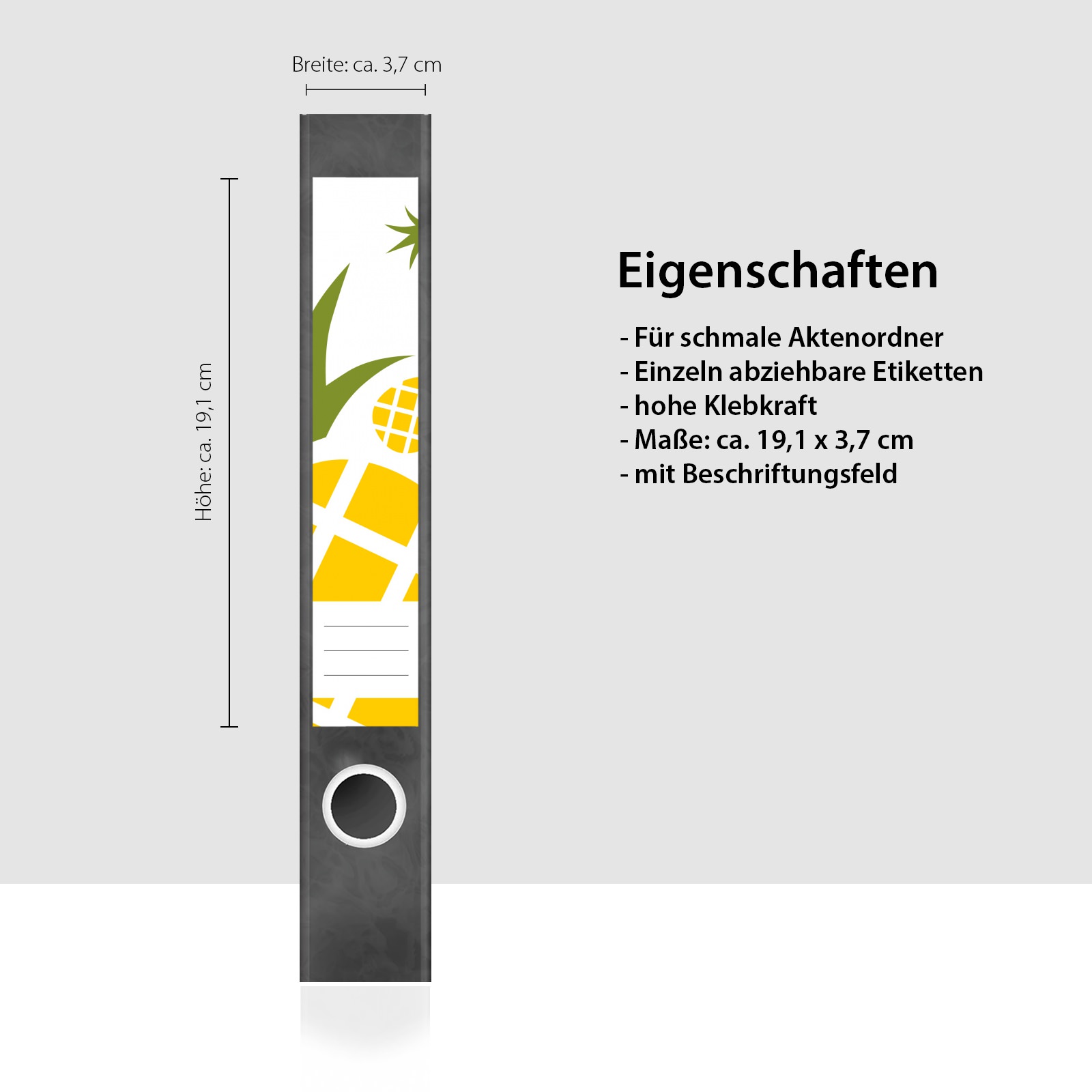 Etiketten für schmale Ordner | Ananas Muster | Selbstklebende Design Ordneretiketten