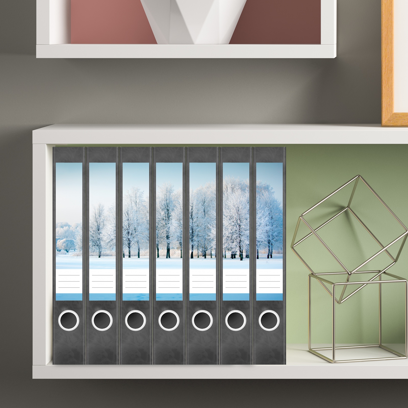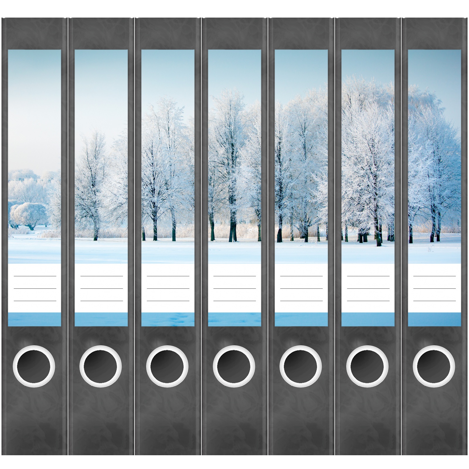 Etiketten für schmale Ordner | Bäume im Winter mit Schnee