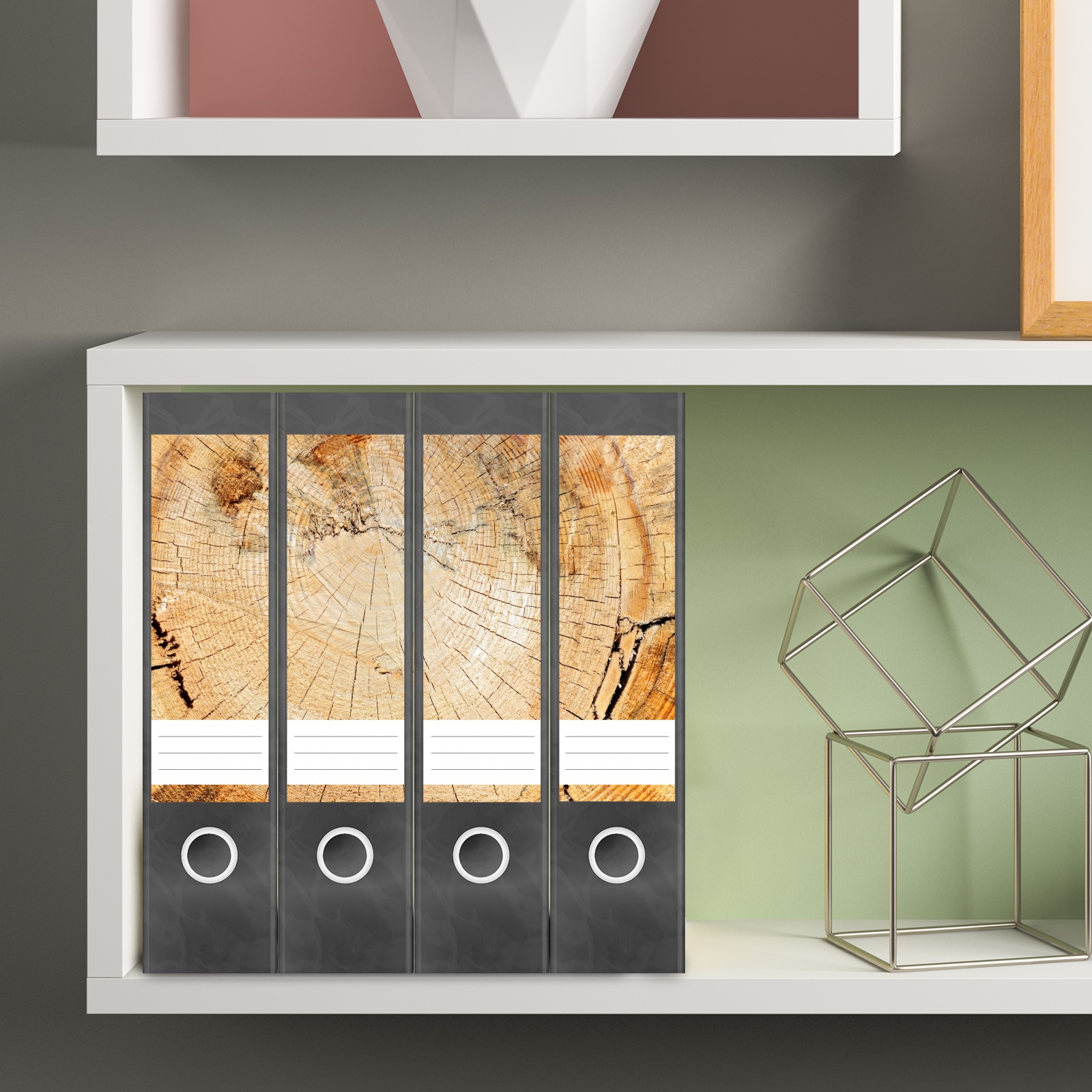 – Die Aufkleber halten auf Ordnerrücken und alten Aufklebern