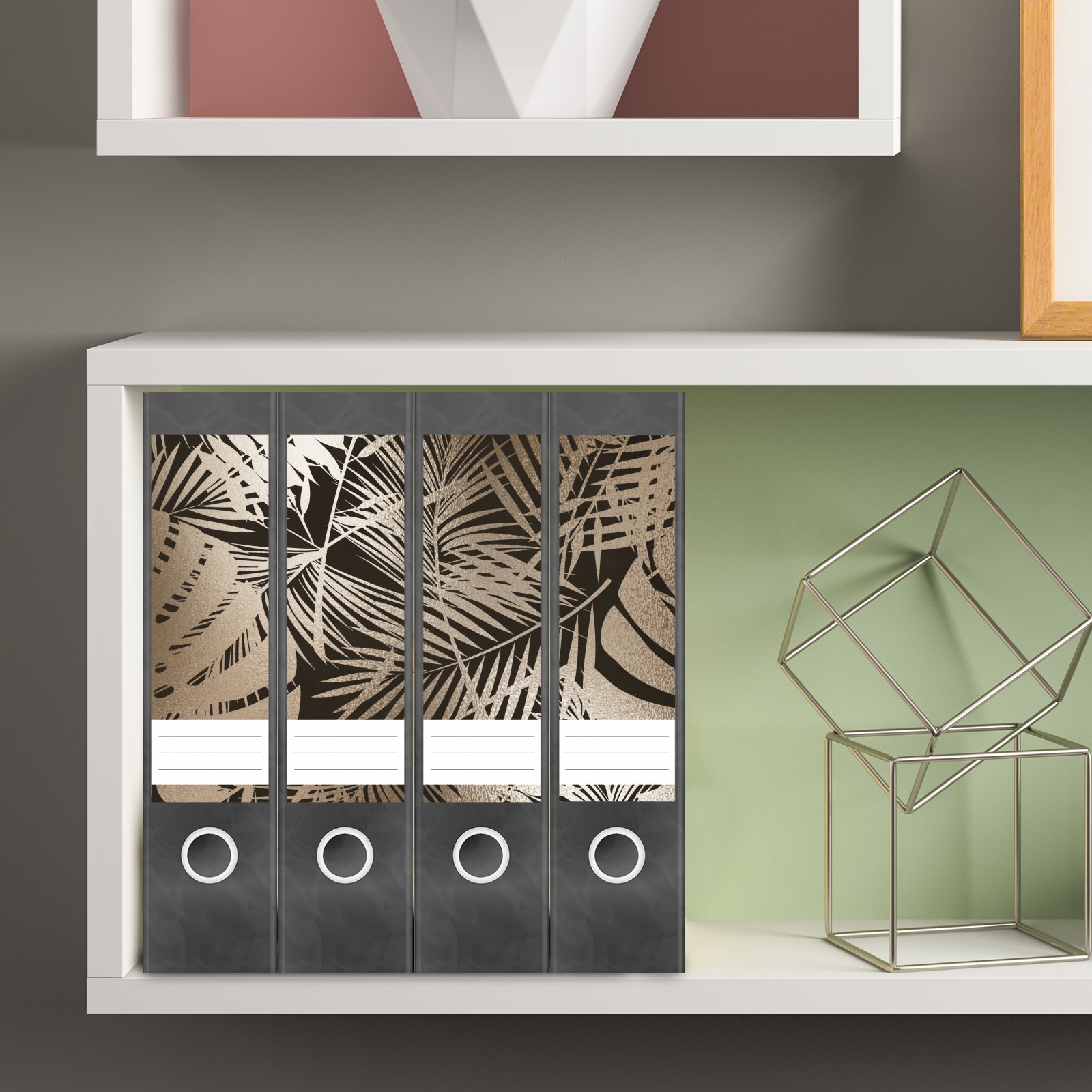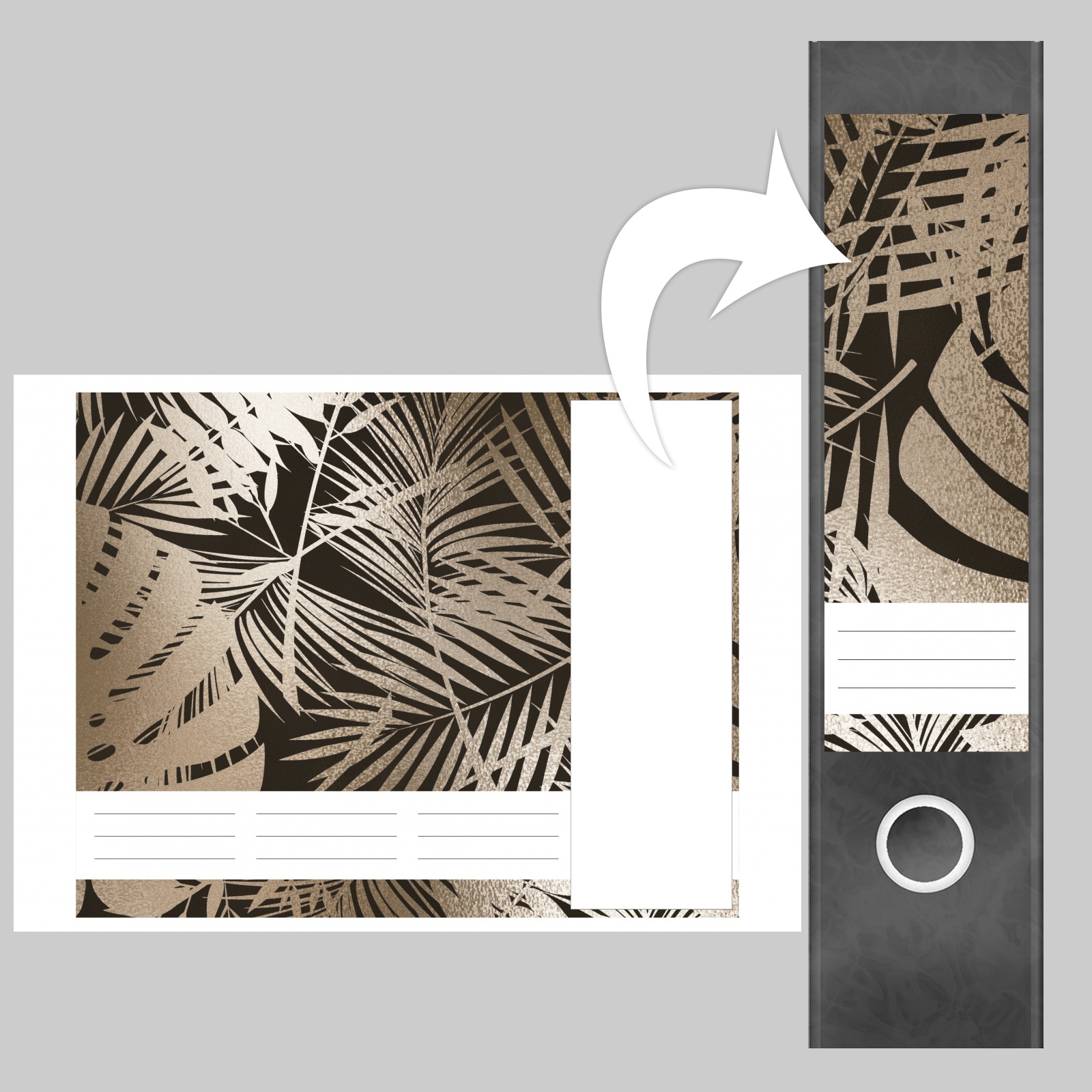 Etiketten für breite Ordner | Bronze Muster Blätter