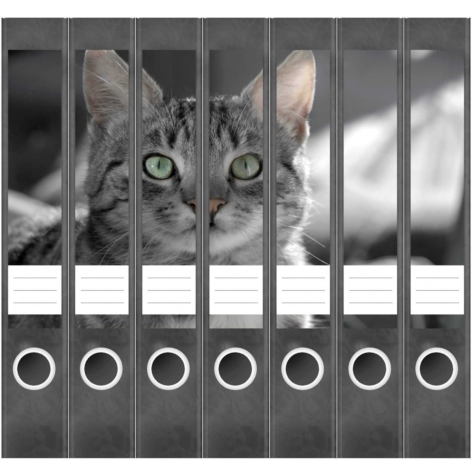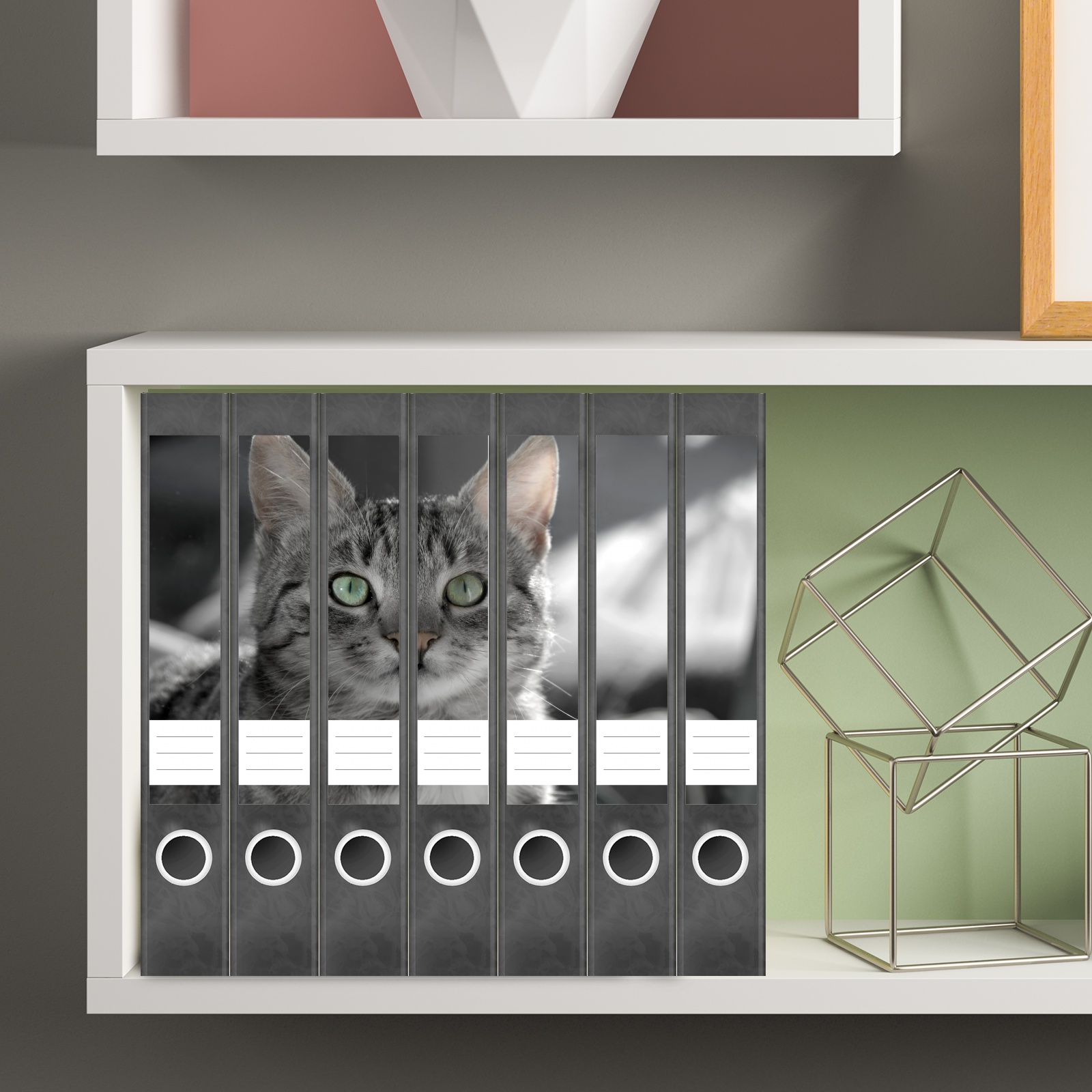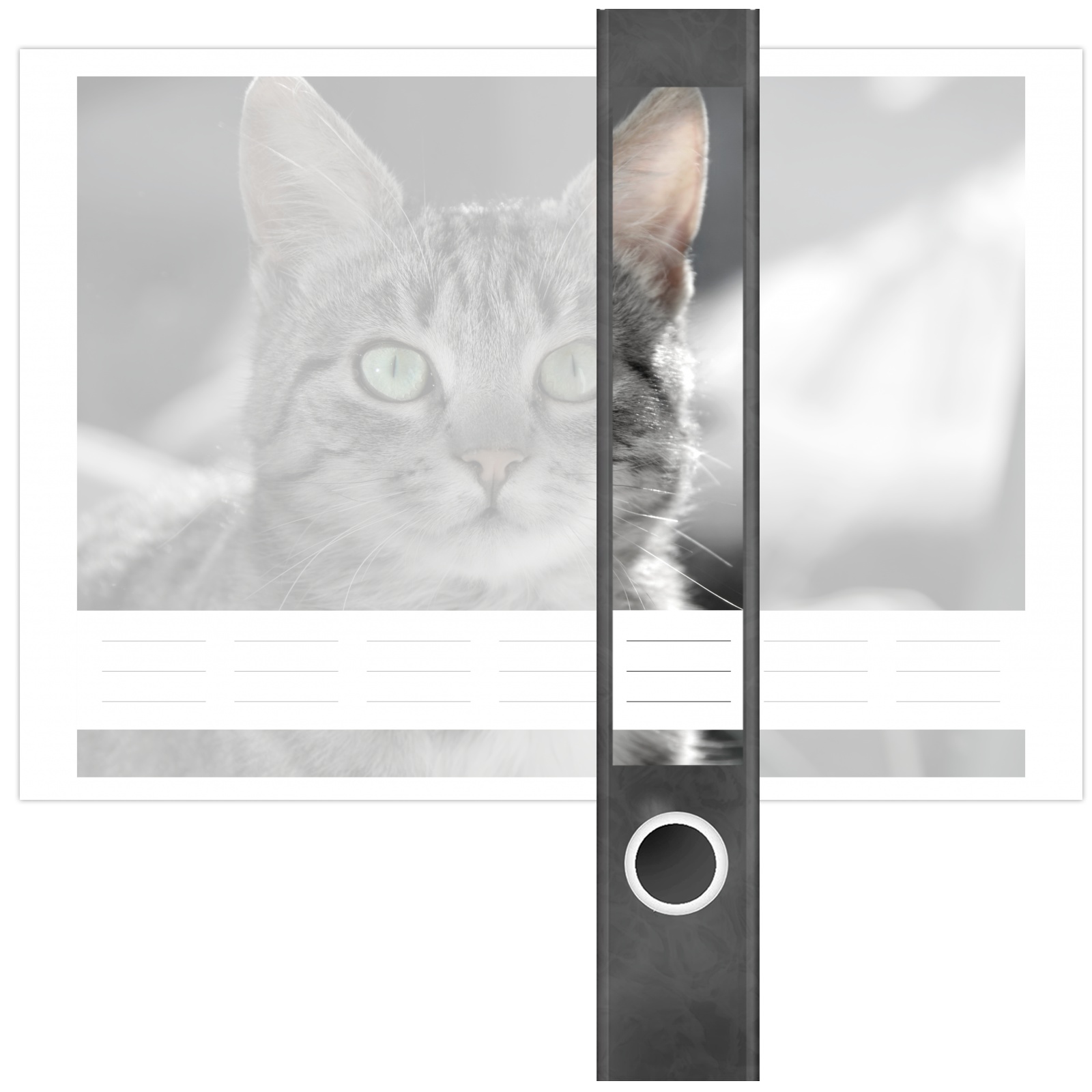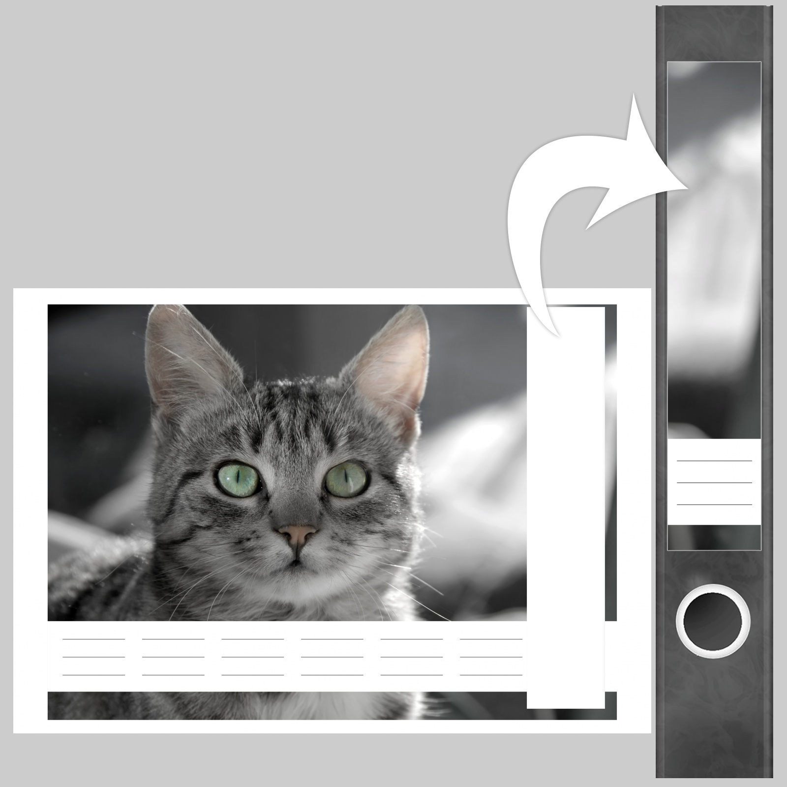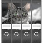 Etiketten für schmale Ordner | gestreifte Katze grau