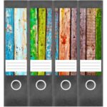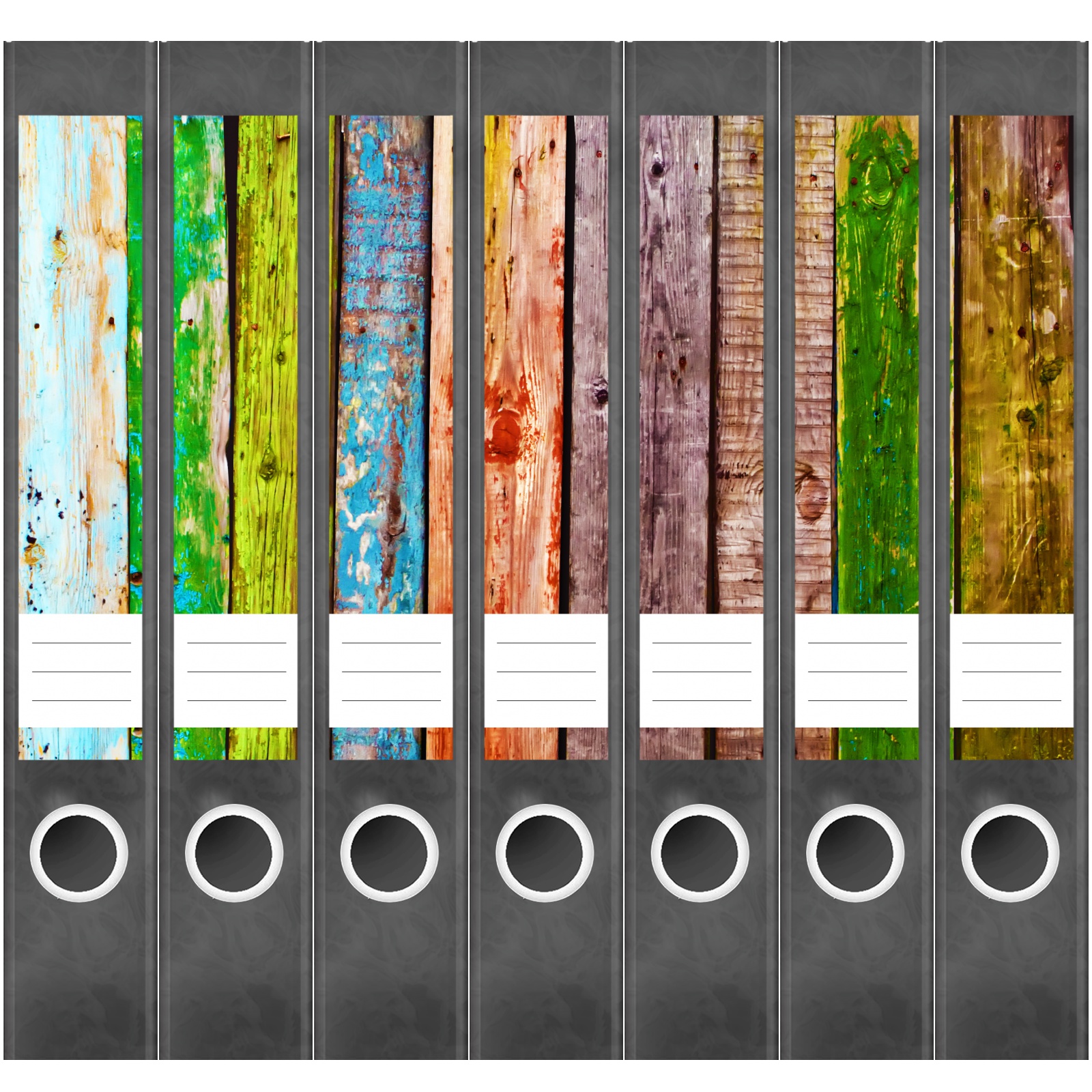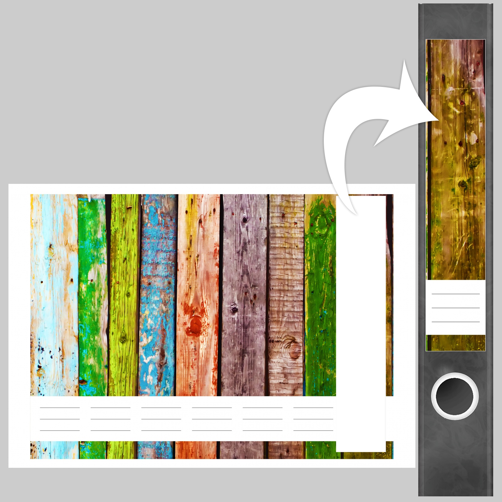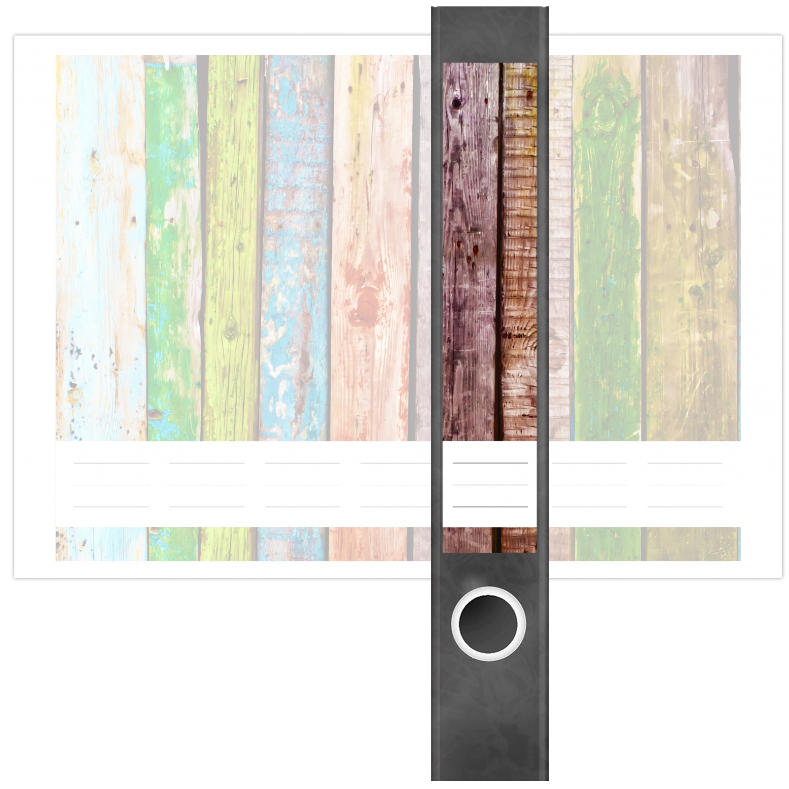 Etiketten für schmale Ordner | Holz Motiv Bunte Bretter