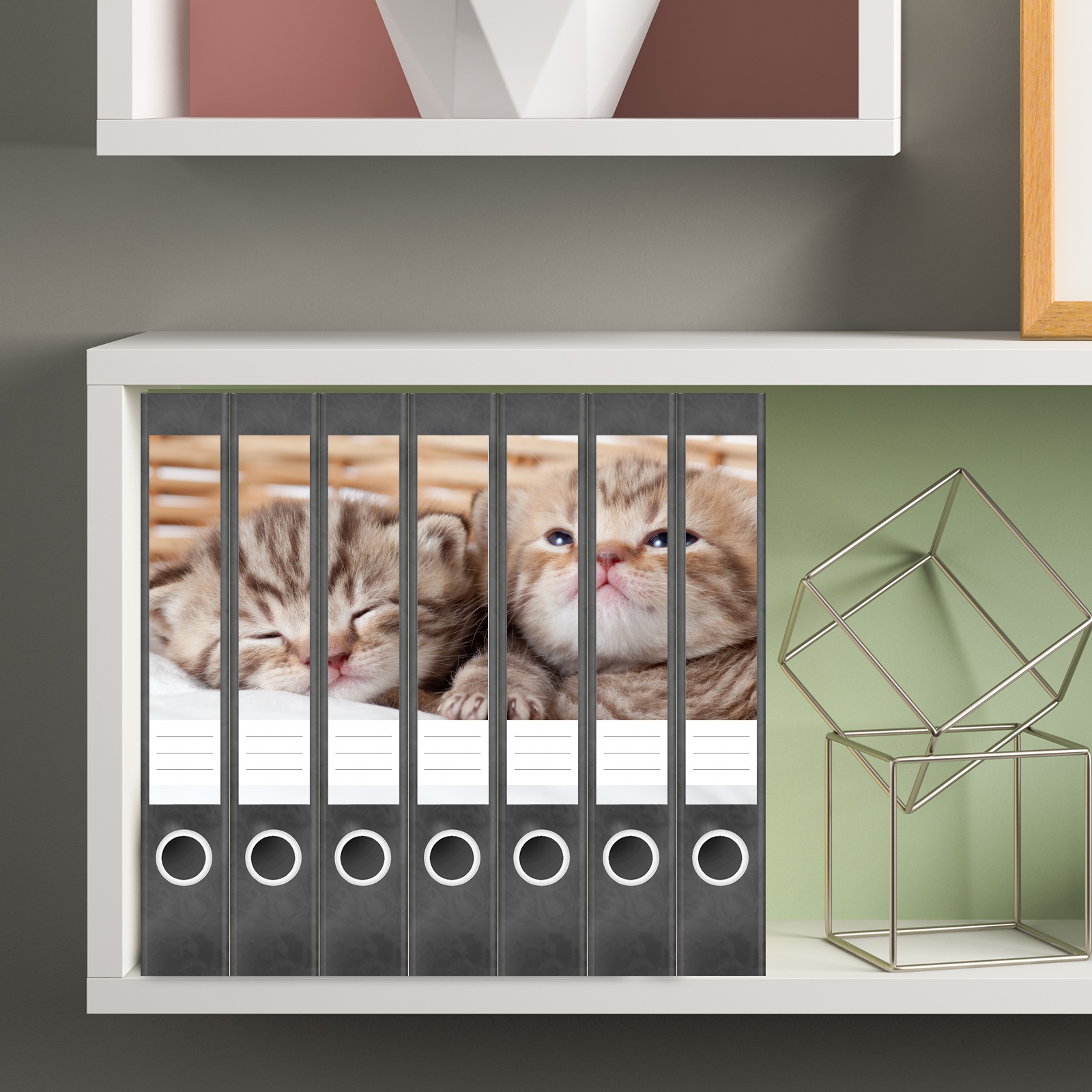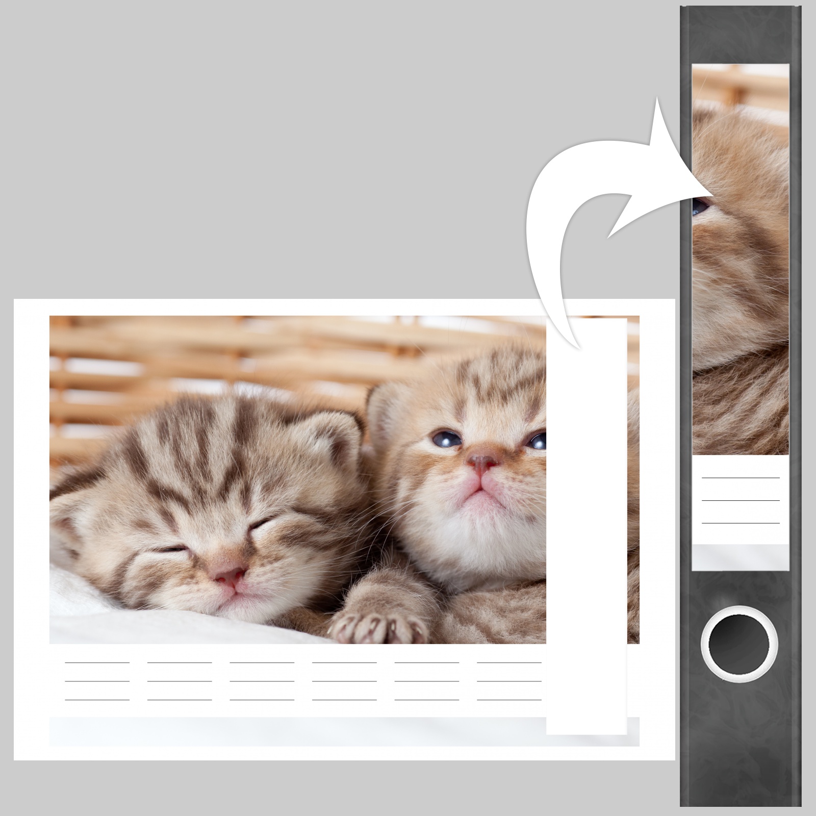 Etiketten für schmale Ordner | Katze im Korb
