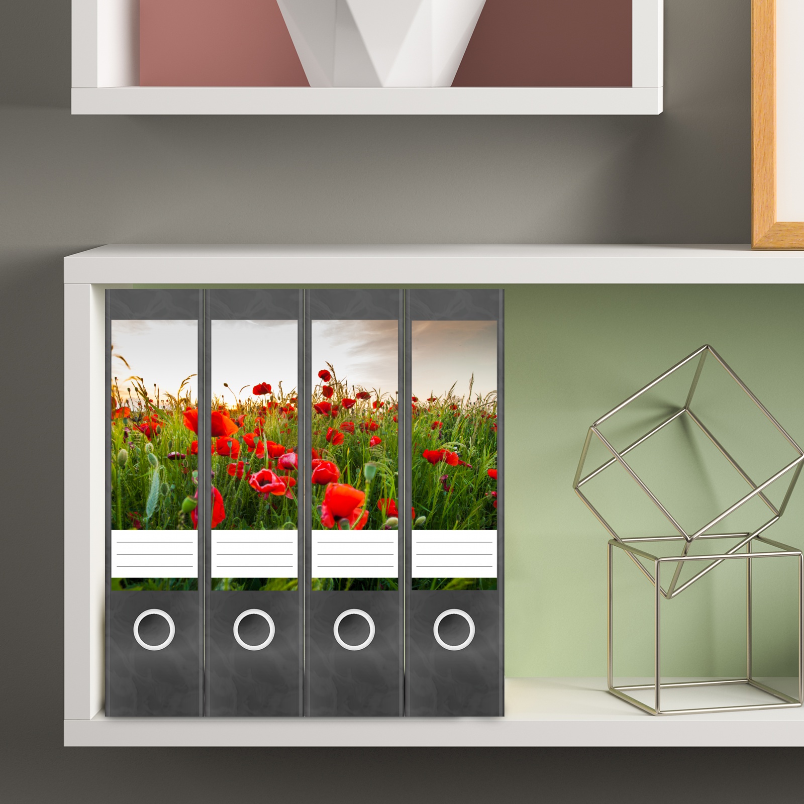 Etiketten für breite Ordner | Mohnblüte Wiese