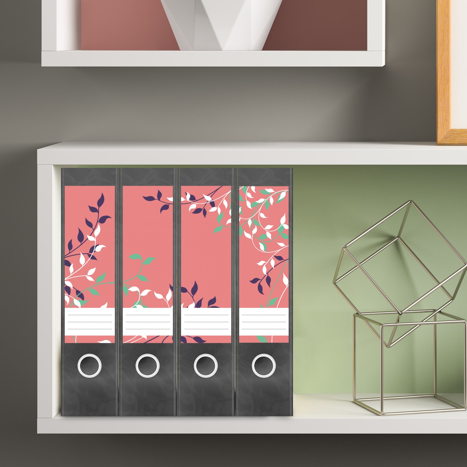Etiketten für breite Ordner | Muster Rosa Blätter
