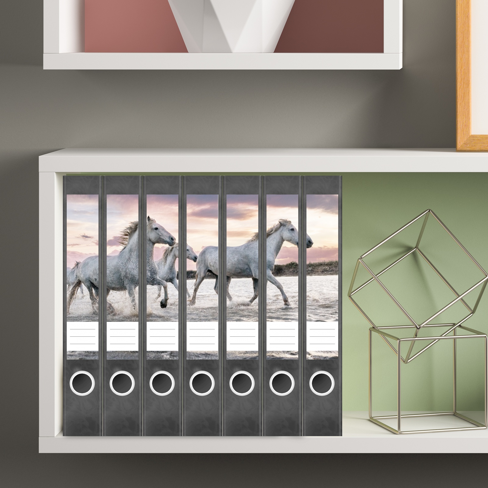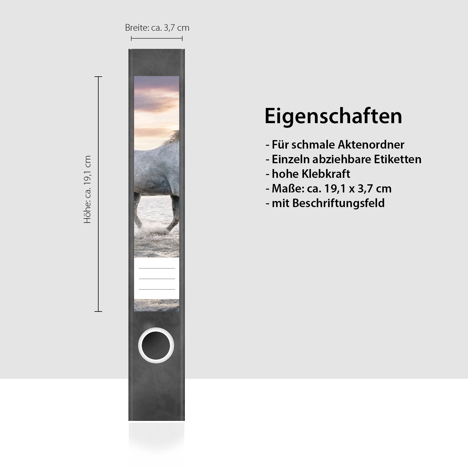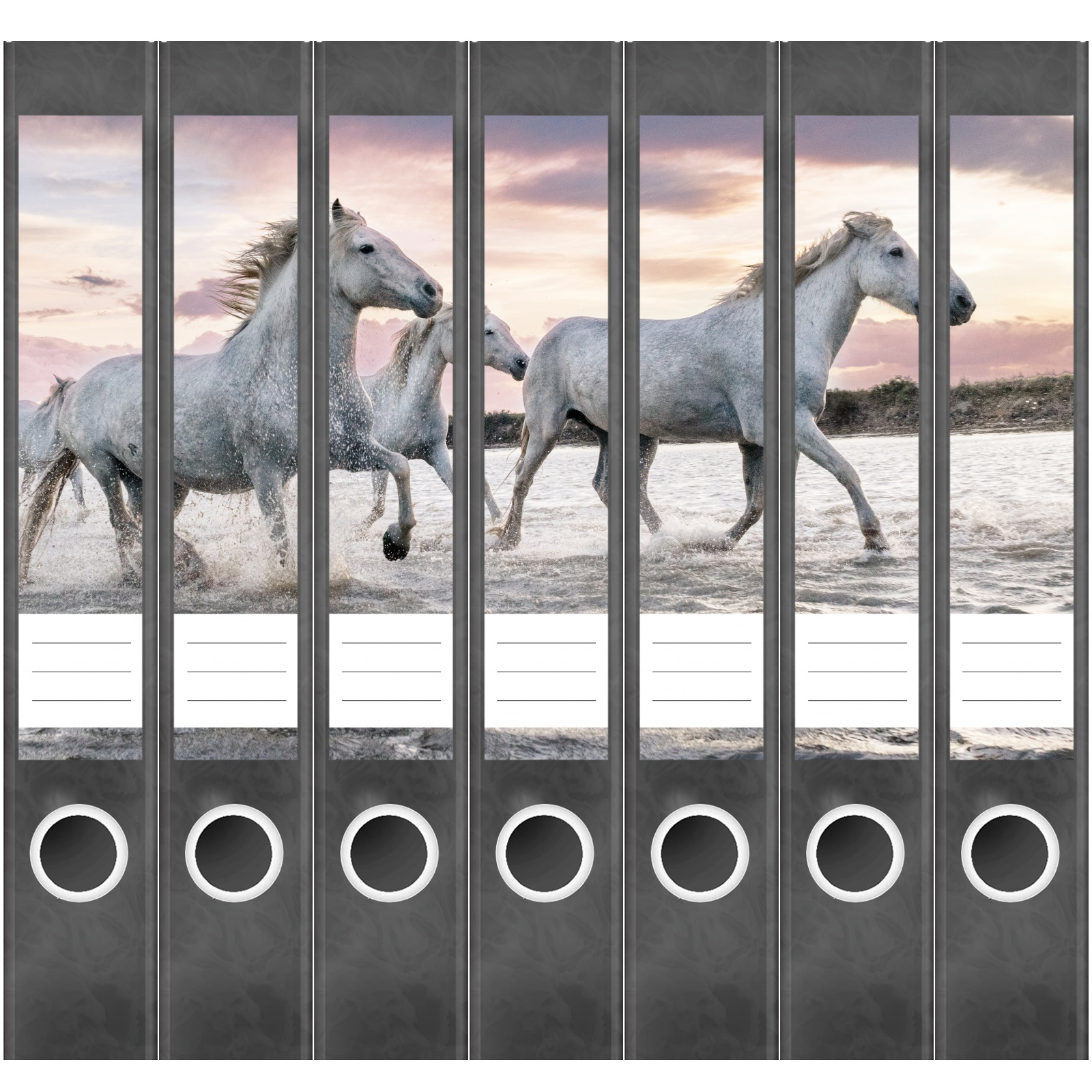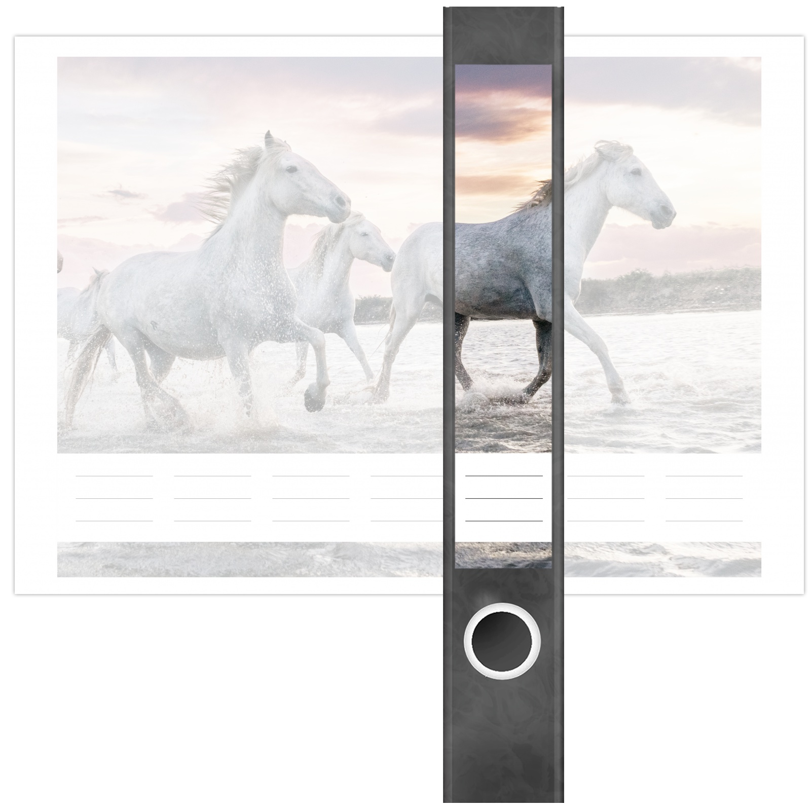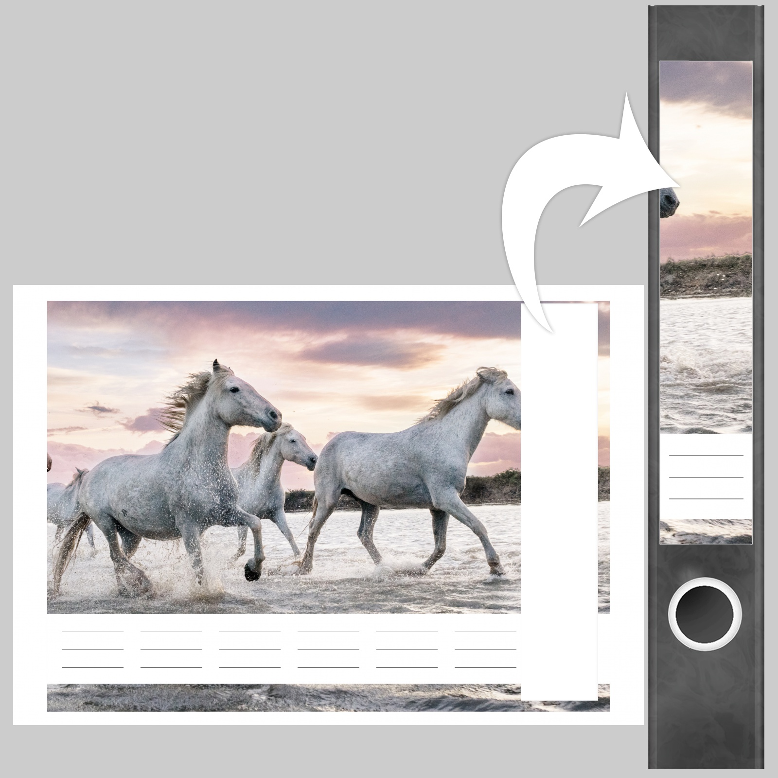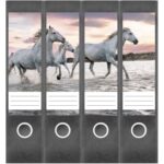 Etiketten für schmale Ordner | Pferde im Wasser