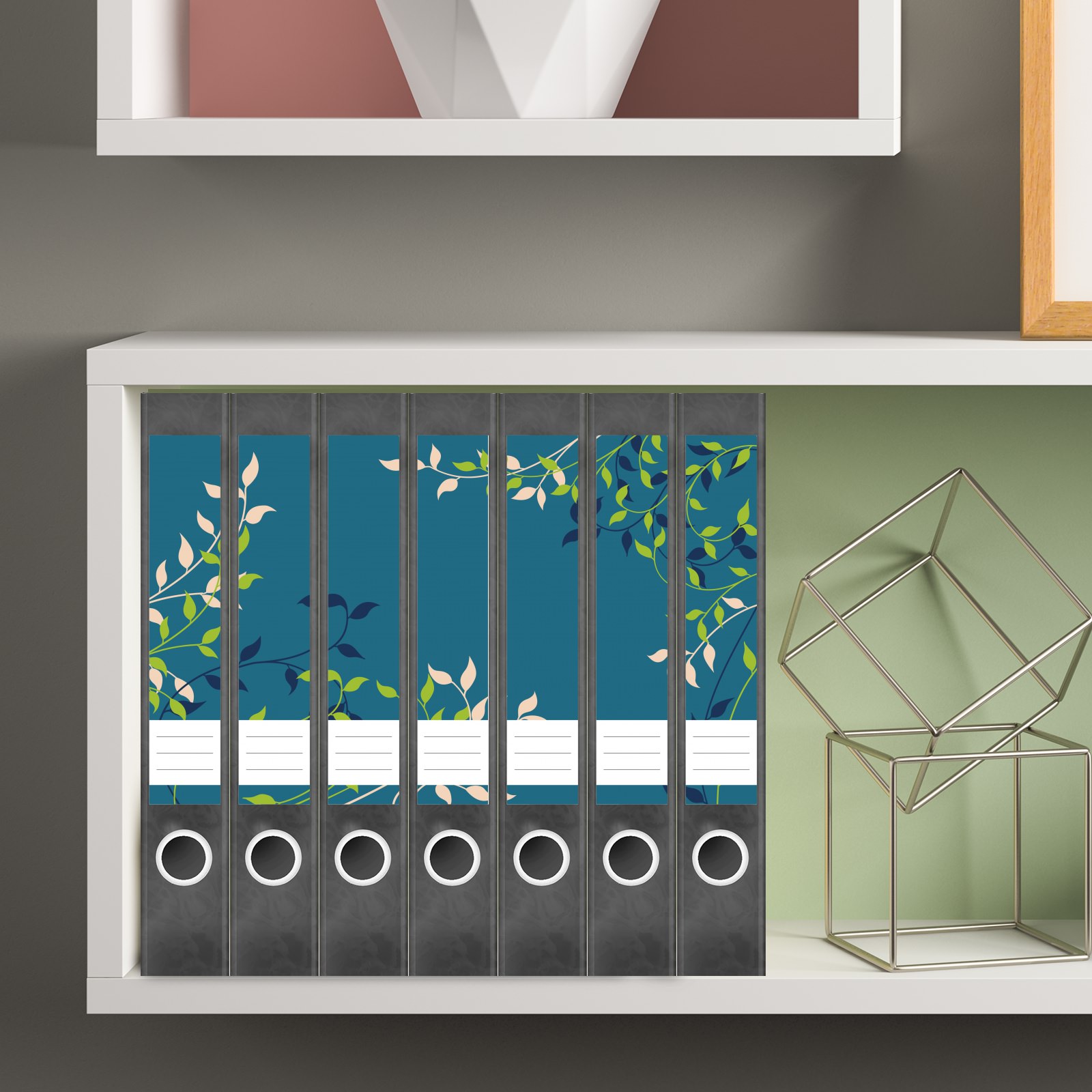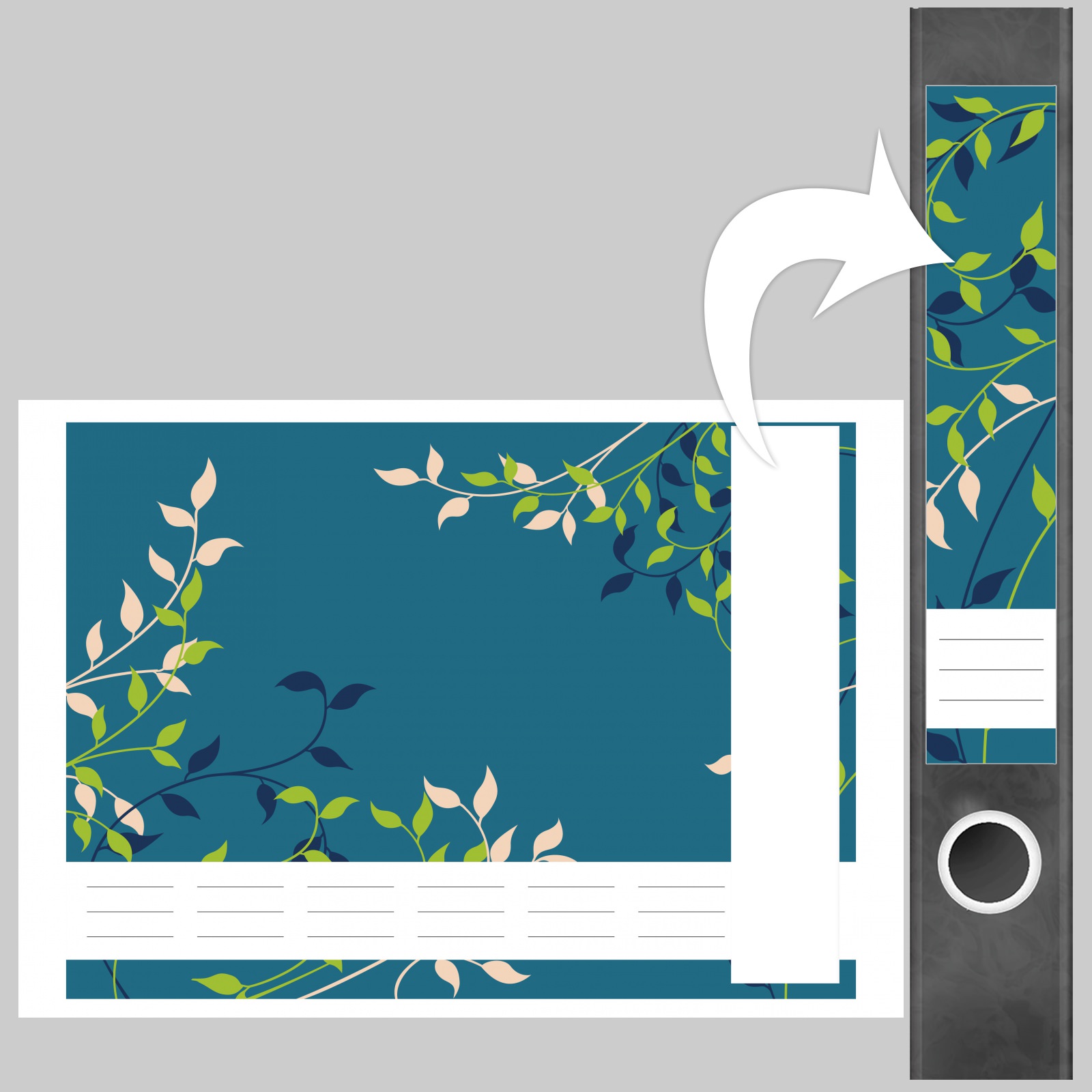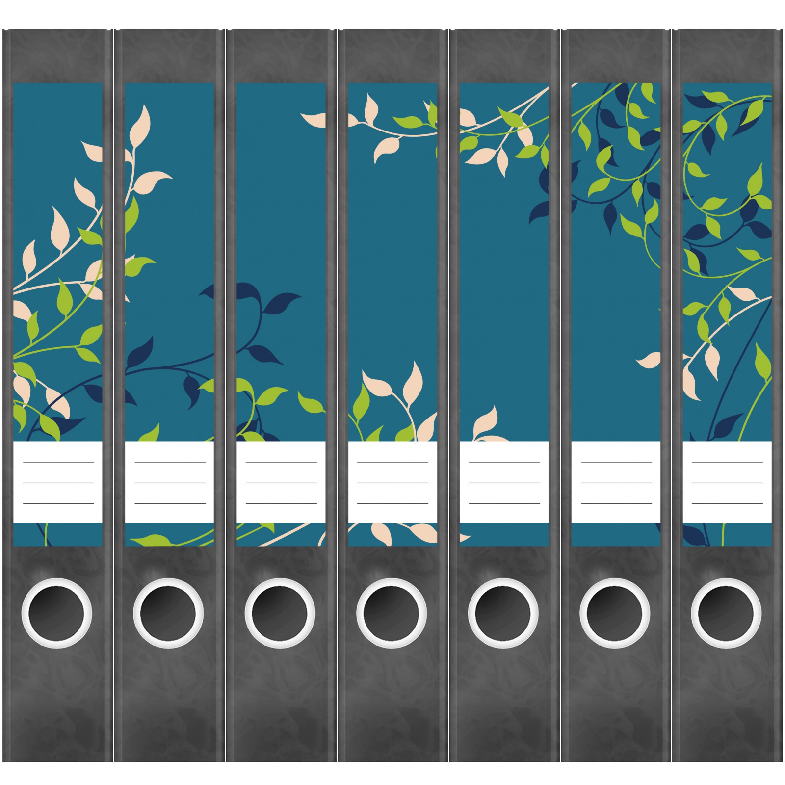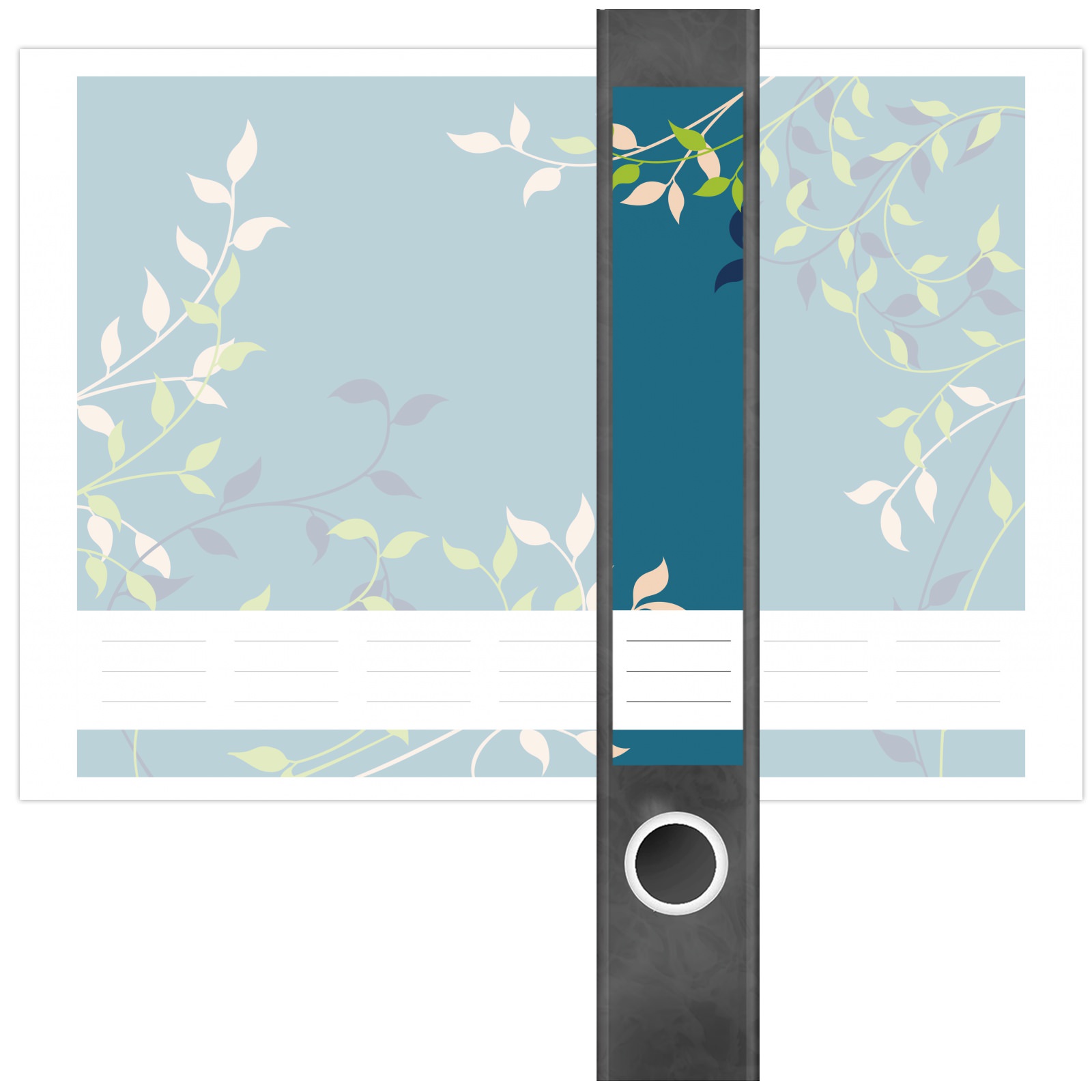 Etiketten für schmale Ordner | Ranken auf Blau