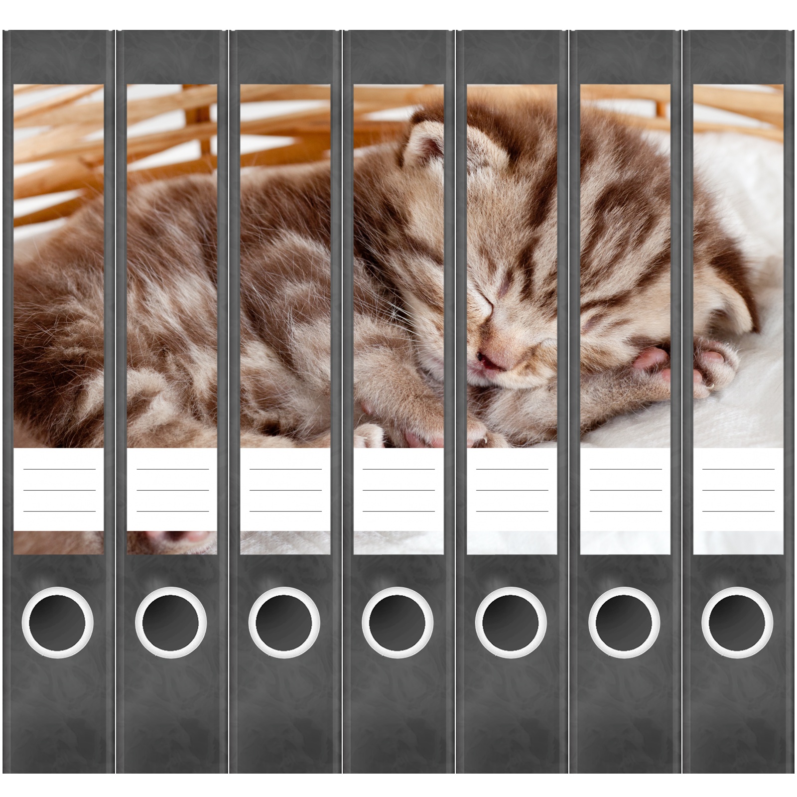 Etiketten für schmale Ordner | schlafendes Kätzchen