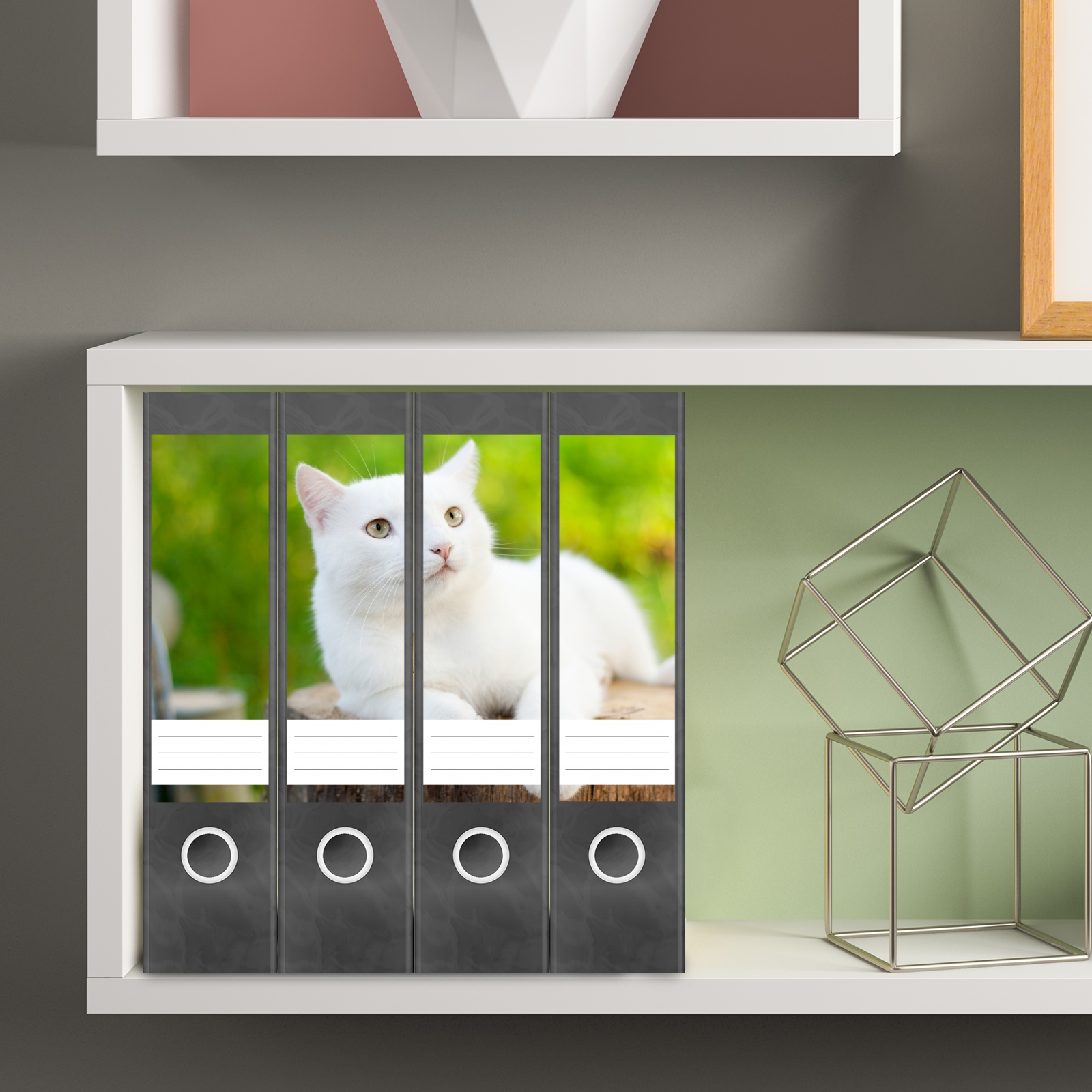 Etiketten für breite Ordner | weiße Katze Kätzchen
